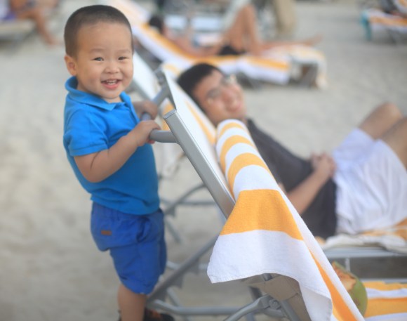 There is definitely something beyond the beach, the sea and the pool. Not only is the weather much nicer in Miami than in New York, but the playground here is a lot more fun as well! Randall is totally in love with this red little train and the many climbing, crawling, riding activities at the Flamingo park.