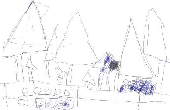 “I love the train tracks you made for me. I’ll draw you a picture. What are your favorite things?”, Randall asked.